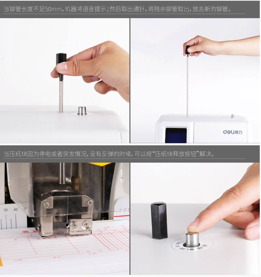 得力3884财务装订机全自动激光定位铆管一键式凭证票据打孔机