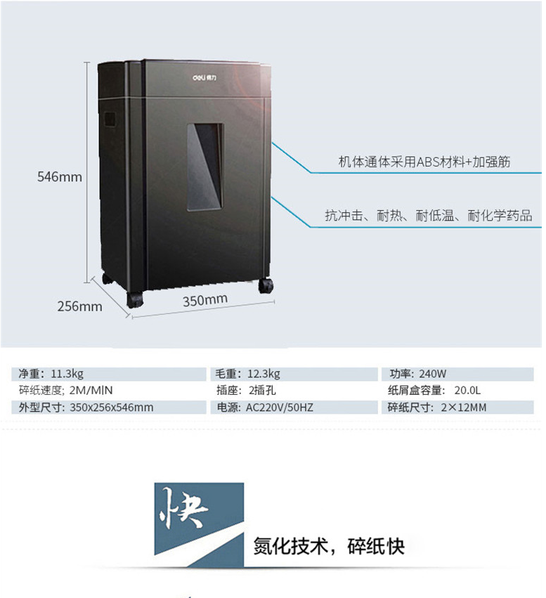 得力(deli)33043德国5级高保密碎纸机 多功能办公碎纸机