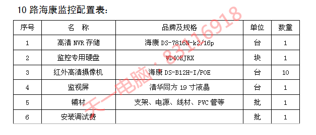 海康威视网络监控套装(含POE交换机、录像机、监控硬盘、含安装)
