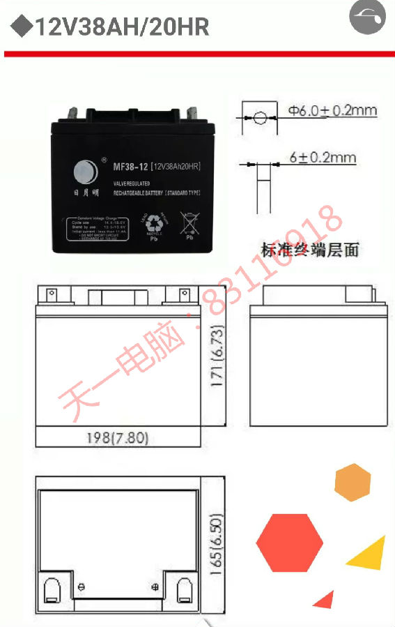 日月明 免维护铅酸蓄电池12V38AH/20HR 蓄电池 适用UPS不间断电源