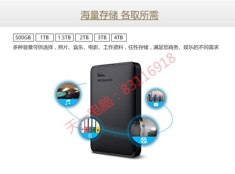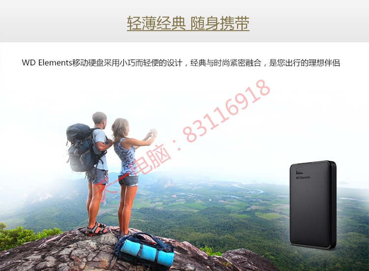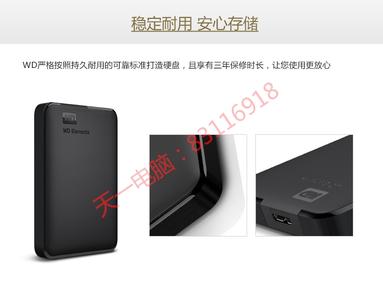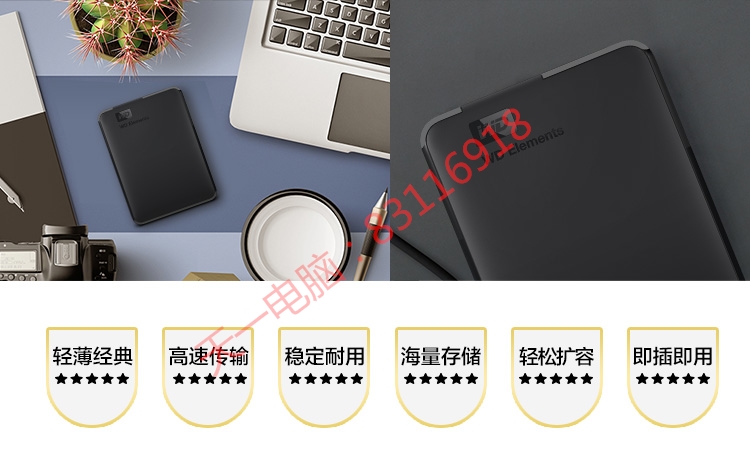西部数据(WD)2TB USB3.0移动硬盘2.5英寸(稳定耐用 海量存储)
