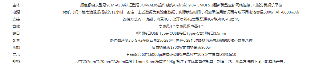 【内置键盘】华为平板 M6 10.8英寸麒麟980影音娱乐平板电脑6GB+256GB 全网通(银钻灰)