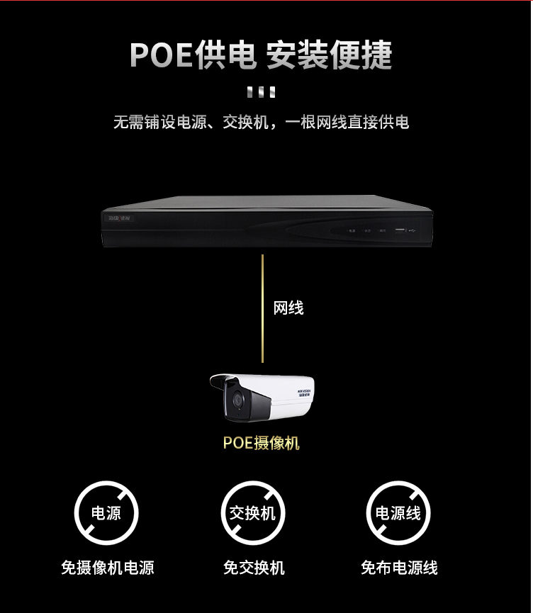 海康威视网络监控硬盘录像机 8路2盘位带网线供电 H.265编码...