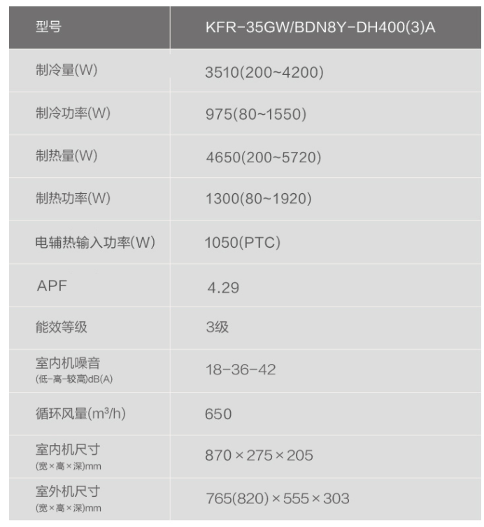 美的(Midea)新能效KFR-35GW/BDN8Y-DH400(3)A 1.5匹 变频冷暖 空调挂机 三级能效