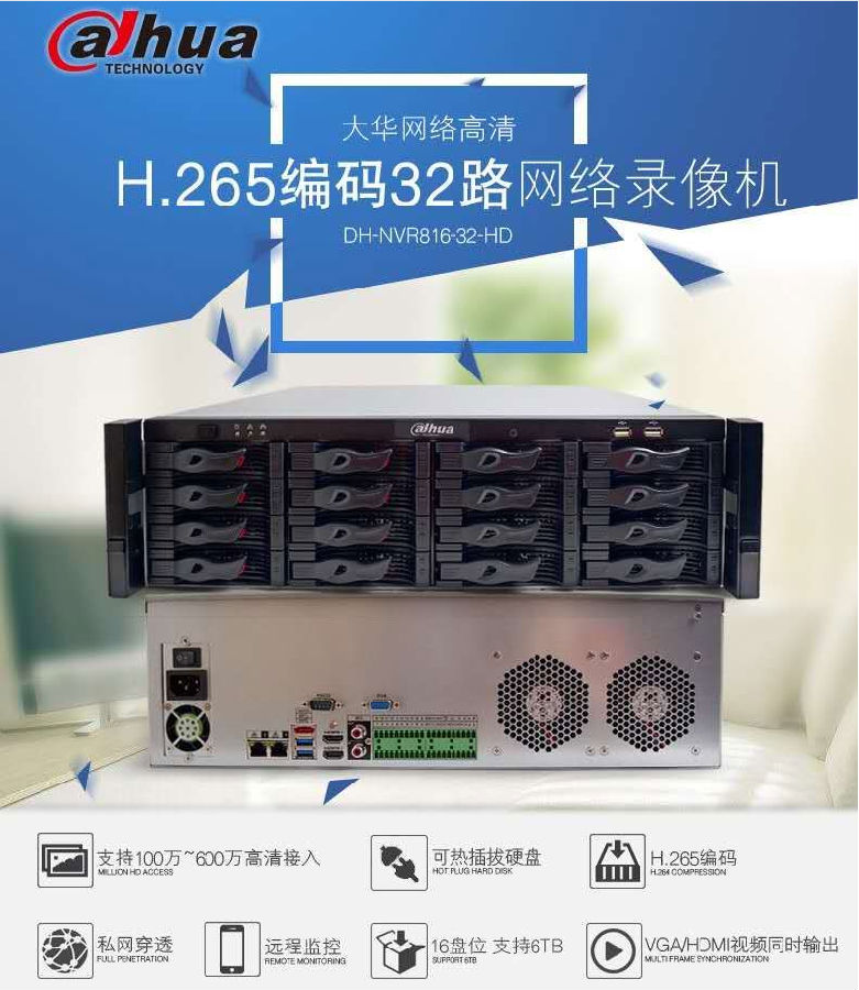 大华监控硬盘录像机64路16盘位NVR网络远程监控主机DH-NVR816-64-HD