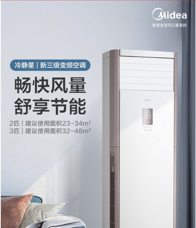 美的(Midea)新能效KFR-72LW/BP2DN8Y-PA401(3) 大3匹变频冷暖 空调柜机 三级能效(标准安装企业购)