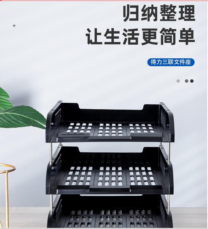 得力9209三层文件盘 文件篮 文件座 文件栏 资料框 资料盘 文件架