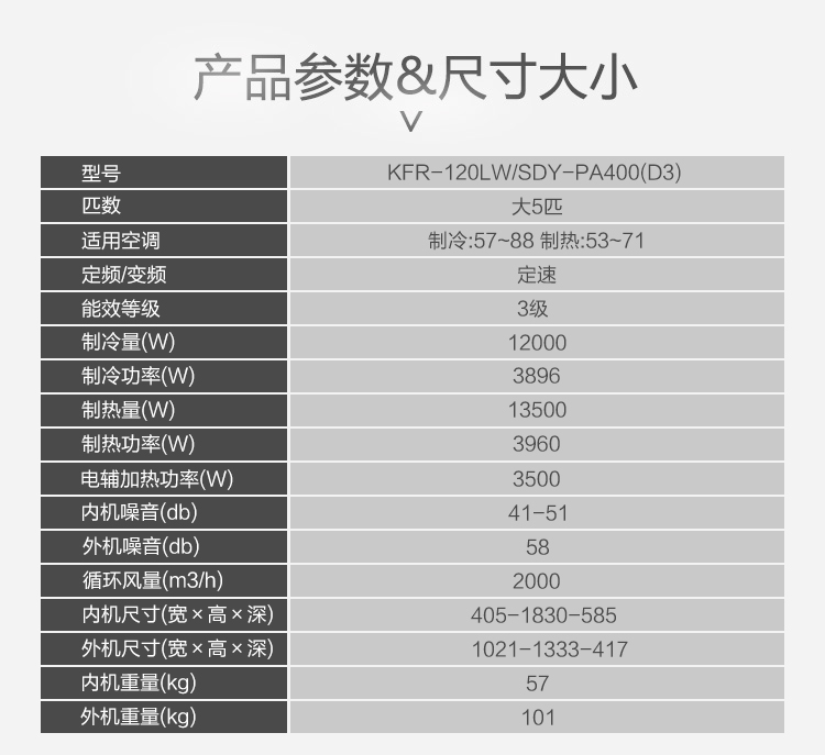 美的 KFR-120LW/SDY-PA400(D3) 5匹冷暖定频柜机 (内含4米铜管)