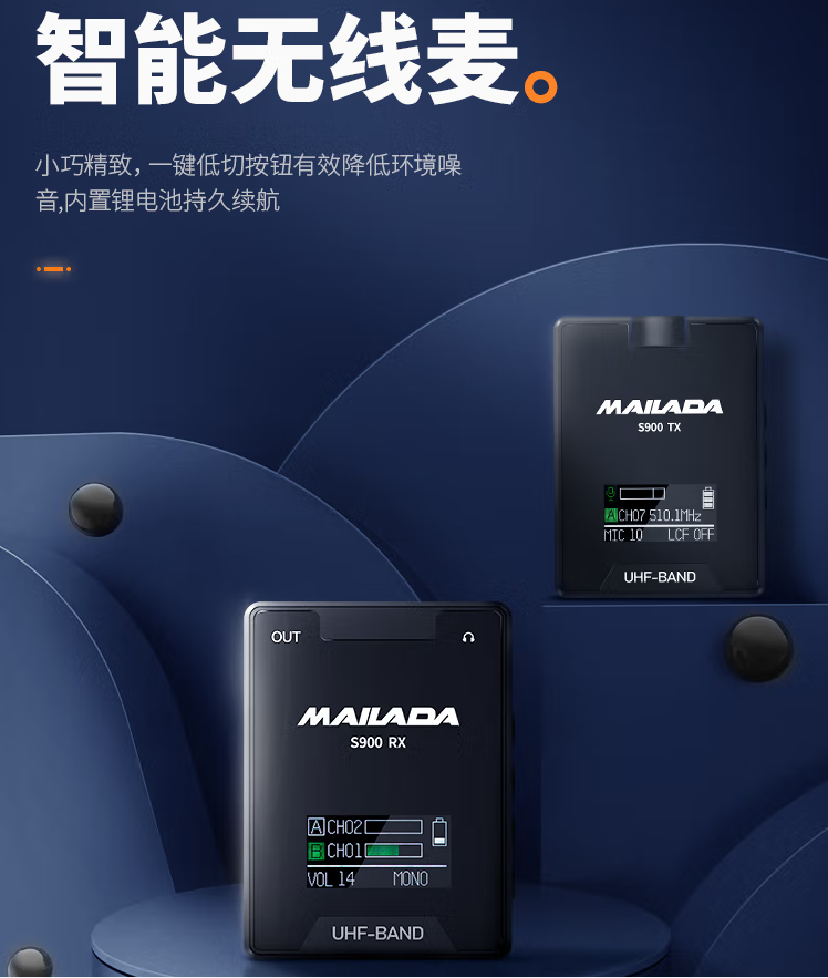 麦拉达(mailada) S900小蜜蜂无线麦克风领夹式手机直播设备单反摄相机采访录制话筒电脑收音器 S900PRO一拖二双人版