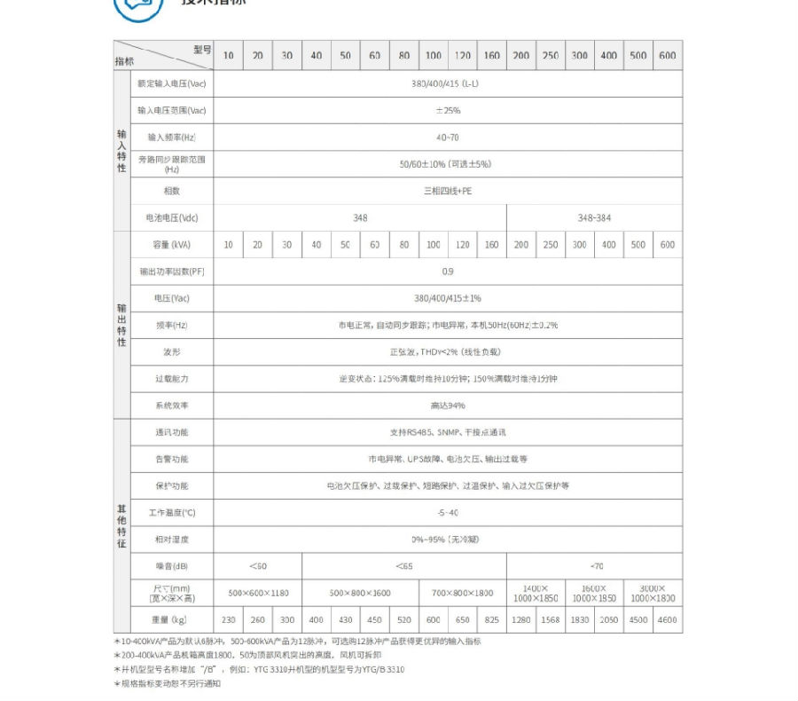 英威腾三进三出工频机LT33080 80KVA UPS (含配套...