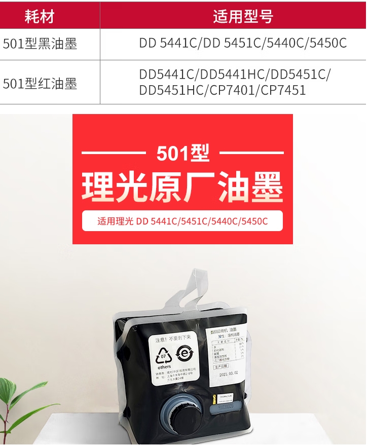 理光(Ricoh)501型黑/红油墨适用机型DD5440C/DD5450C