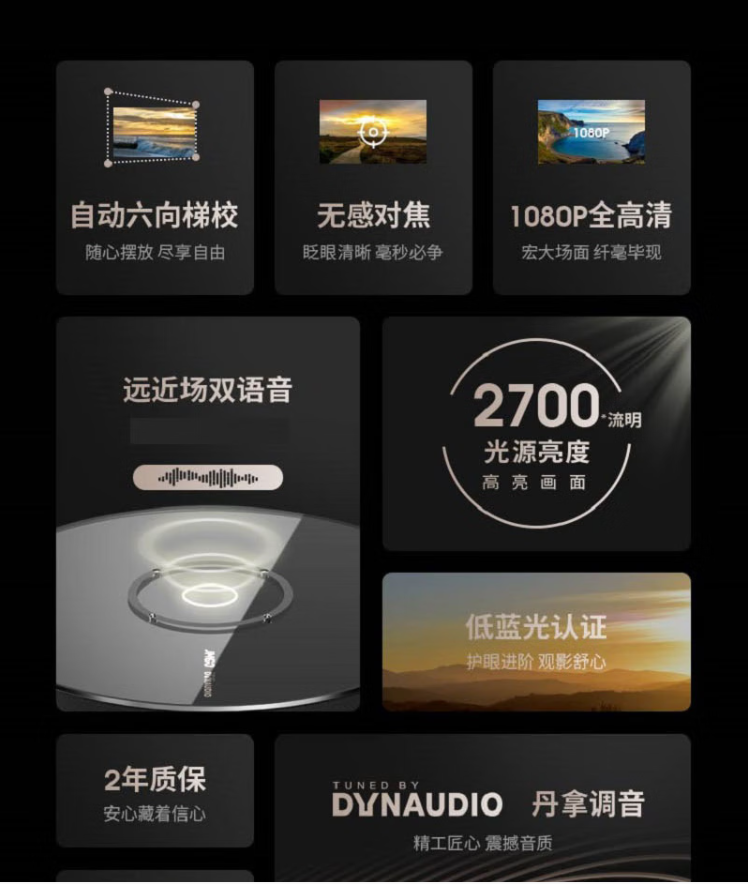 坚果(JmGO) E20投影仪(J74-3D0)家用办公 智能投影 Ai语音控制 自动六向梯校 1080高清便携式 投影仪