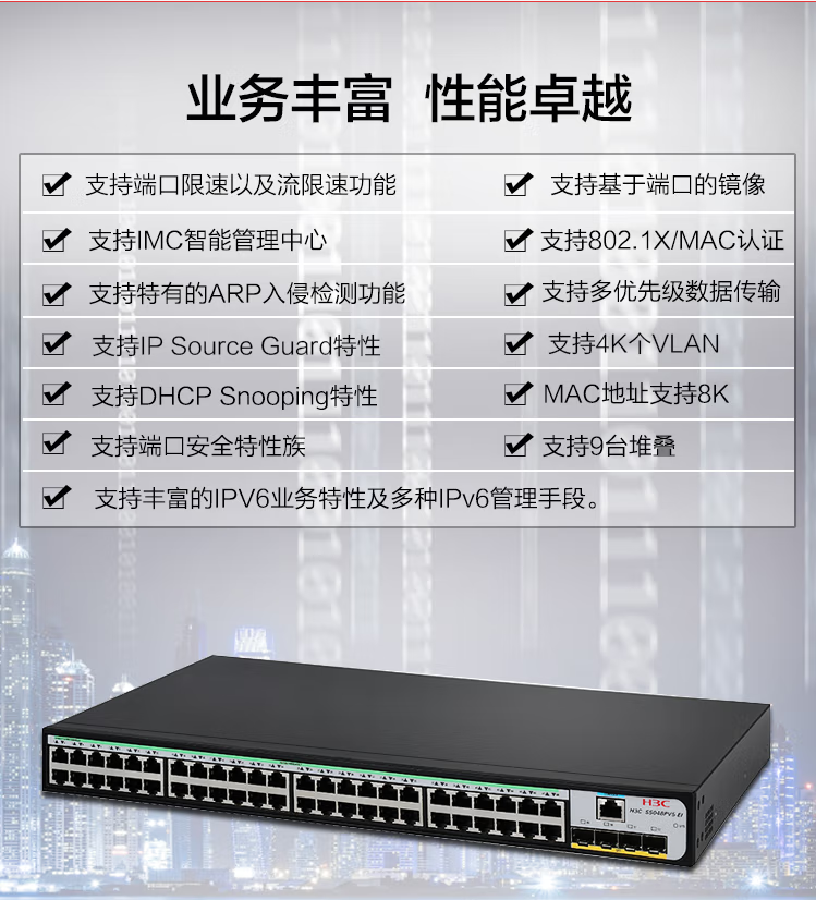 新华三(H3C)S5048PV5-EI 48口千兆电+4千兆光纤口二层网管企业级网络交换机 IPv6/划分VLAN