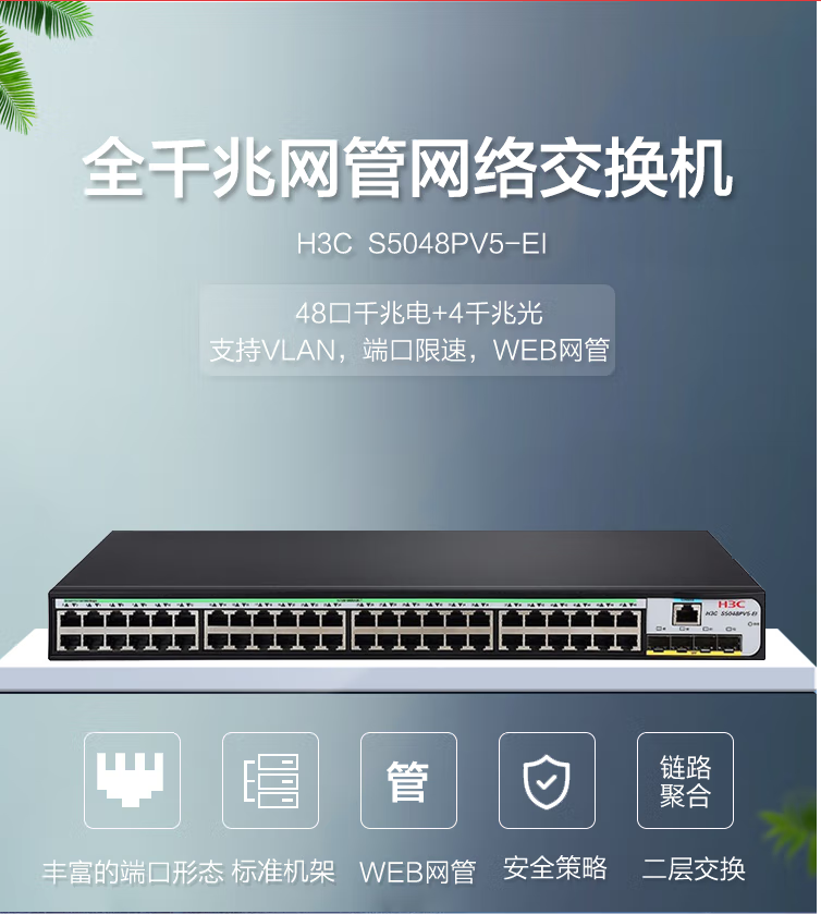 新华三(H3C)S5048PV5-EI 48口千兆电+4千兆光纤口二层网管企业级网络交换机 IPv6/划分VLAN