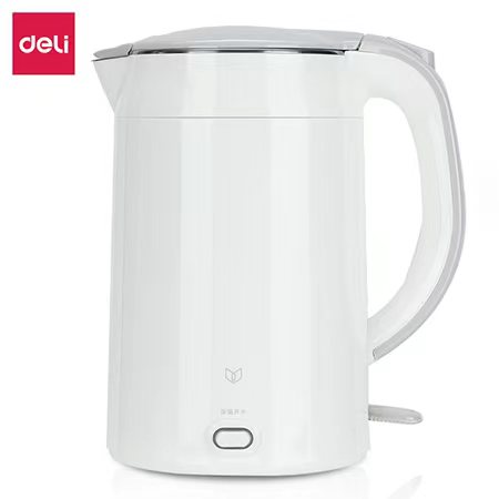 得力(deli)办公家用电水壶不锈钢防烫伤电热水壶双层防滑烧水壶 1.7L 保温电水壶 白色 85613