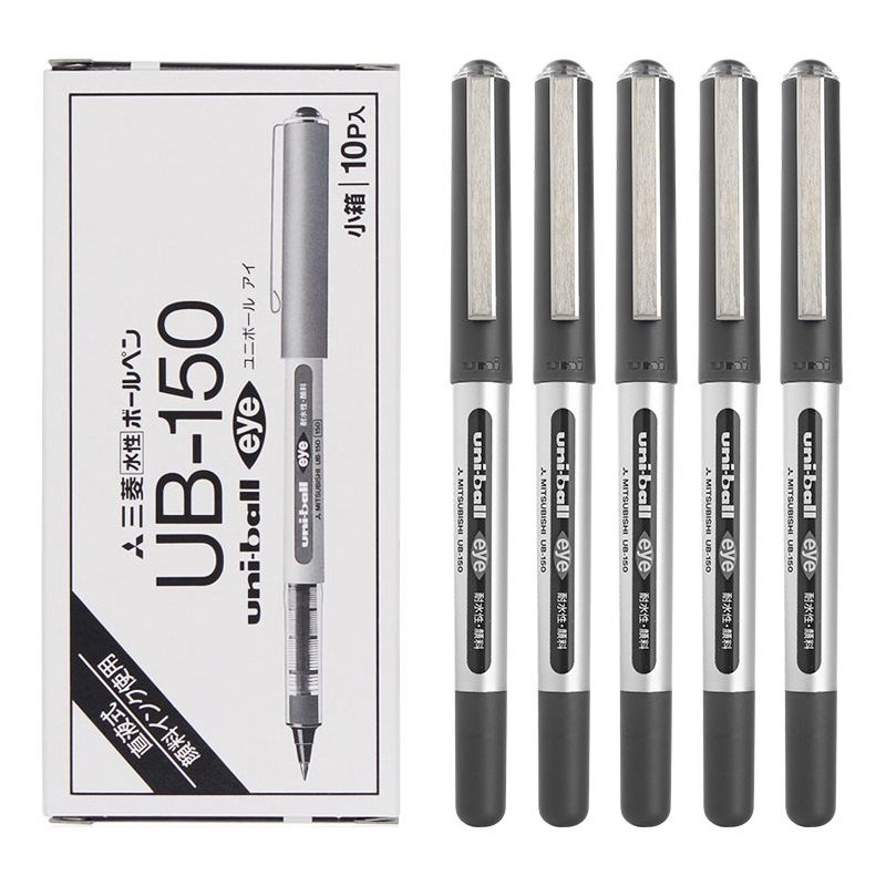 uni三菱(uni)UB-150直液式中性笔耐水耐晒走珠笔0.5mm考试财务签字笔 黑色10支/盒