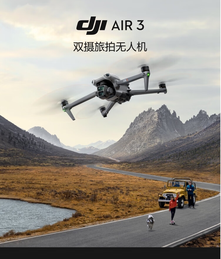 大疆 DJI Air 3 畅飞图传增强套装(带屏遥控器)航拍无人机 中长焦广角双摄 + 随心换2年版实体卡