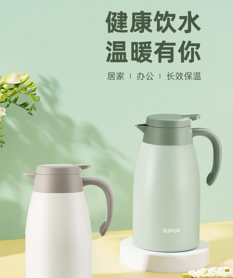 苏泊尔(SUPOR)保温壶家用大容量水壶316L不锈钢真空保温瓶热水壶暖壶开水瓶白