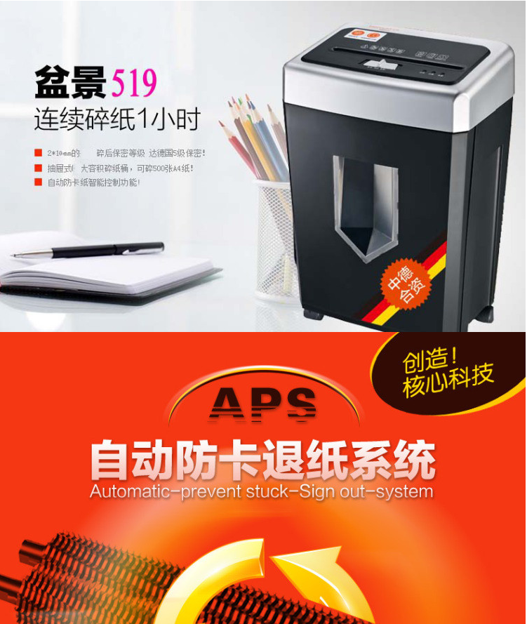 盆景(bonsaii)519 连续碎颗粒状家用 办公静音碎纸机 家用碎纸碎光盘