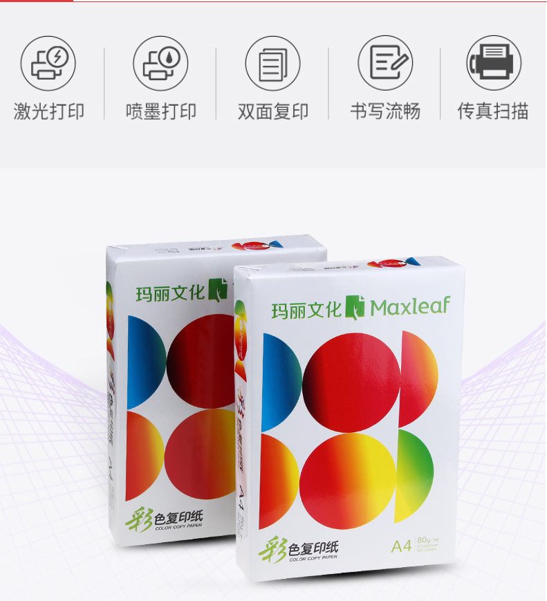 | 玛丽a4彩纸打印纸 | 复印纸 | 玛丽/Malee | 玛丽a4彩纸打印纸 | 25 | 10.00 | ||