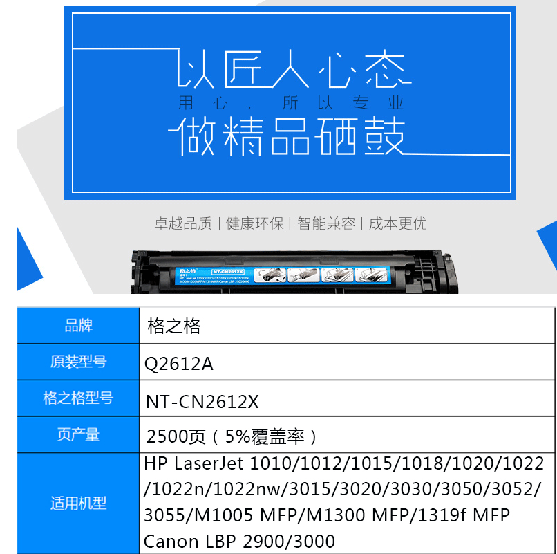 | 格之格NT-CN2612X适用于惠普1010 3015 3030 M1005MFP 佳能2900 3000碳粉盒 黑色 | 硒鼓 | 格之格/G&G | 格之格NT-CN2612X适用于惠普1010 3015 3030 M1005MFP 佳能2900 3000碳粉盒 黑色 | 80 | 70.00 | ||