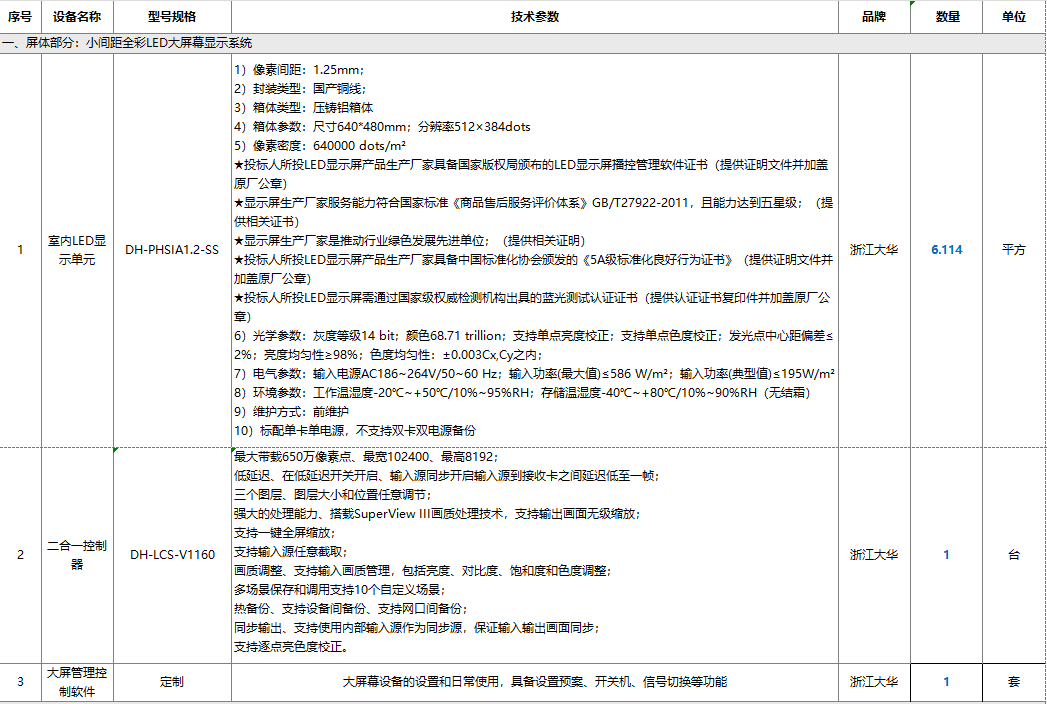 | 大华/ahua LED电子屏(P1.25/尺寸3.84m*1.92m/智能分区讲解系统) | 显示器 | 大华/ahua | 大华/ahua LED电子屏(P1.25/尺寸3.84m*1.92m/智能分区讲解系统) | 套 | 1 | 130000.00 | |